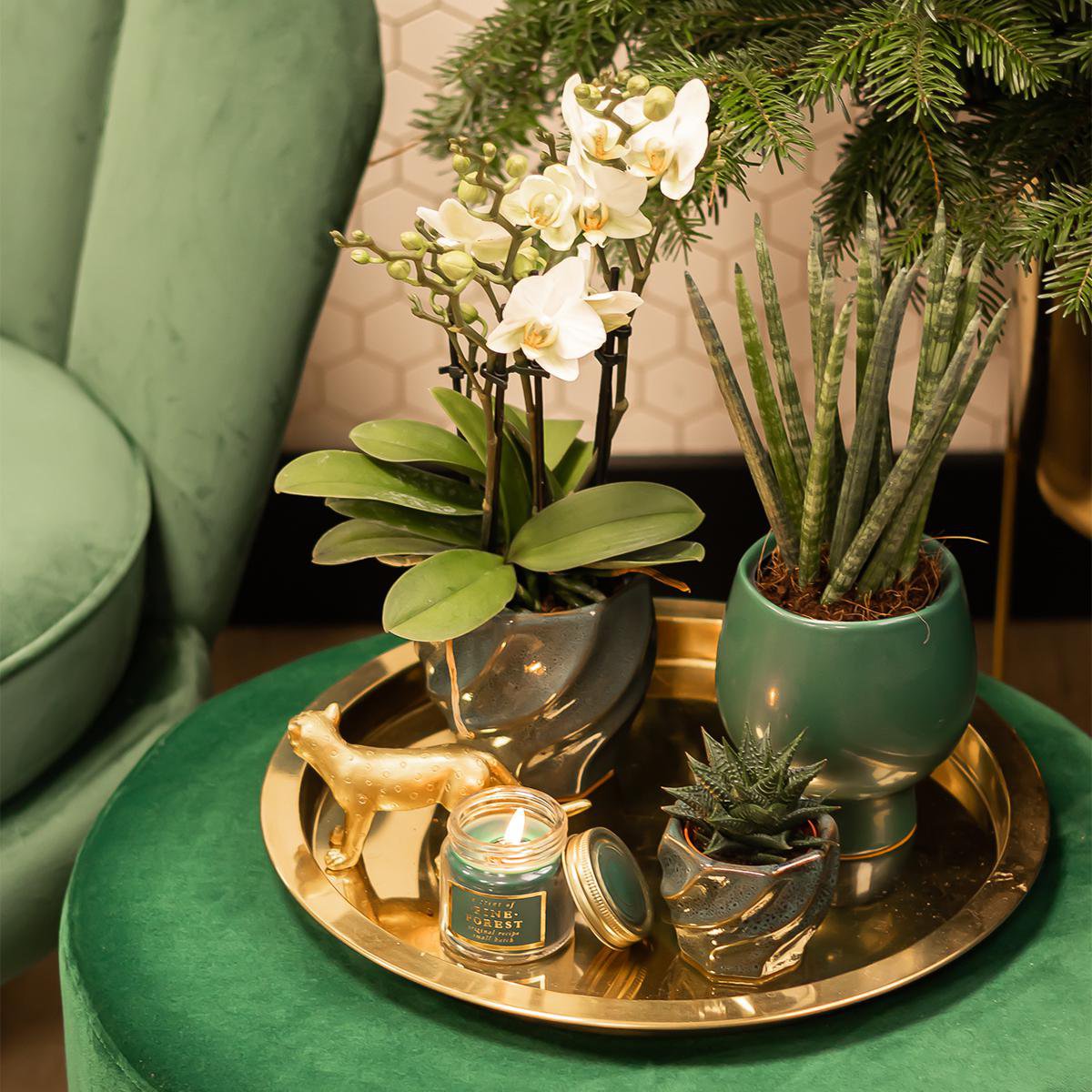 Verzorging groene plant: Geef jouw groene plant eens om de drie weken water. Een handige tip om te testen of jouw groene plant water nodig heeft: voel eerst aan de grond of deze droog aanvoelt. Voelt deze nat aan? Dan kun je het beste nog even wachten met het geven van water. Zet de groene plant op een lichte plek neer, maar niet in direct zonlicht.