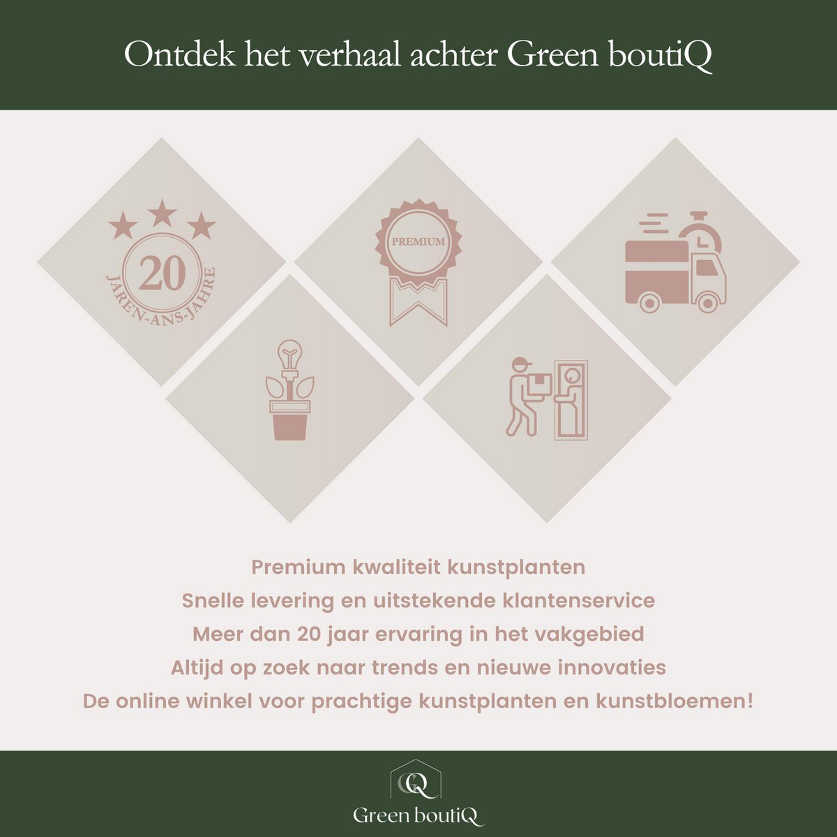 Dit vrolijke kunstboeket komt volledig tot zijn recht in een van onze elegante vazen. Het product staat prachtig op je vensterbank, maar ook op je bureau, bijzettafel of kaptafel. Voeg deze eyecatcher toe aan je interieur en geniet van tijdloze elegantie!