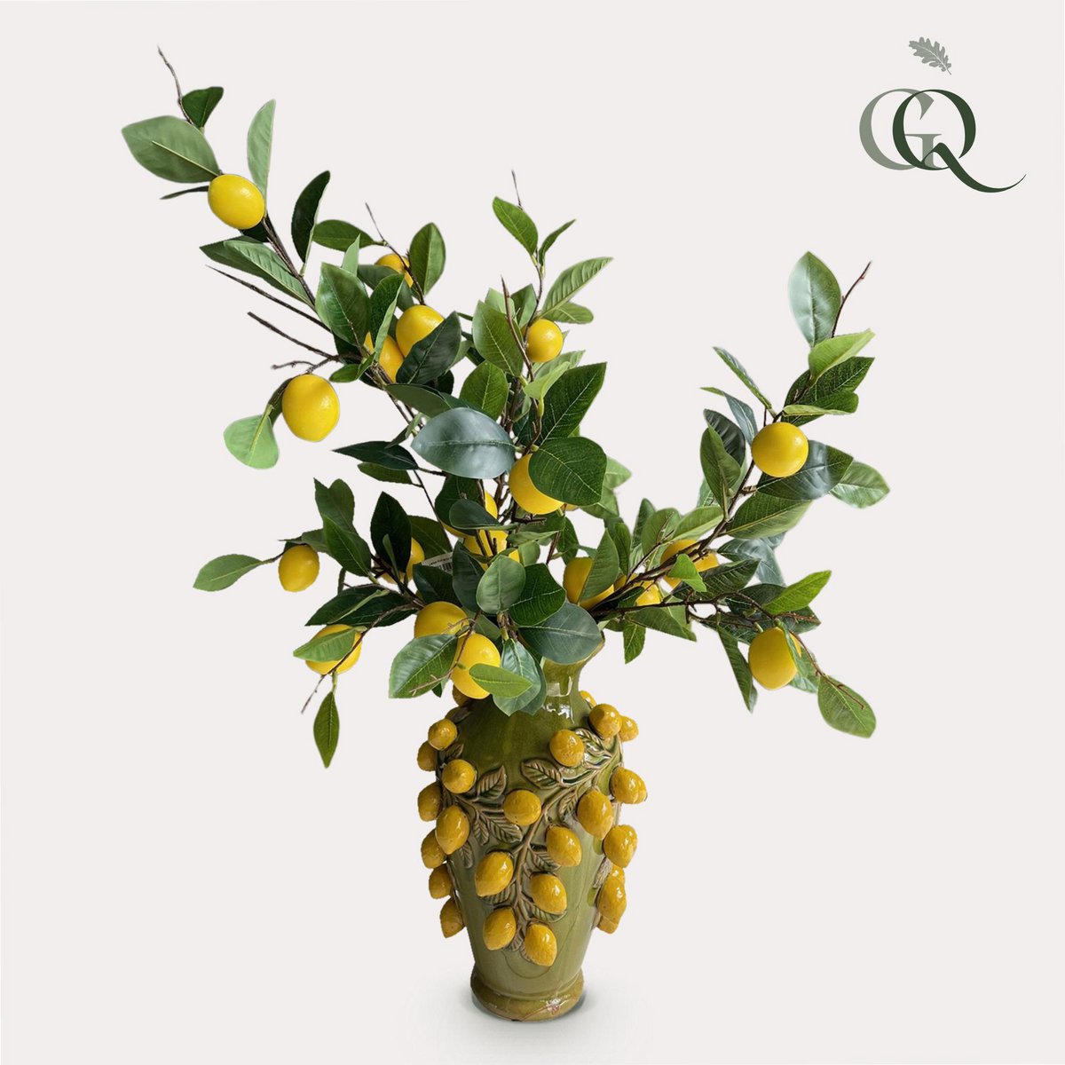 Geniet van vrolijkheid in huis met dit fantastische boeket! De citroenen zijn haast niet van echt te onderscheiden en geven dit product een unieke uitstraling. Het boeket van 95 cm hoog is samengesteld door een topbloemist en voorzien van de beste materialen en details. Door de hoge kwaliteit ben je ervan verzekerd dat het boeket jarenlang mooi blijft.