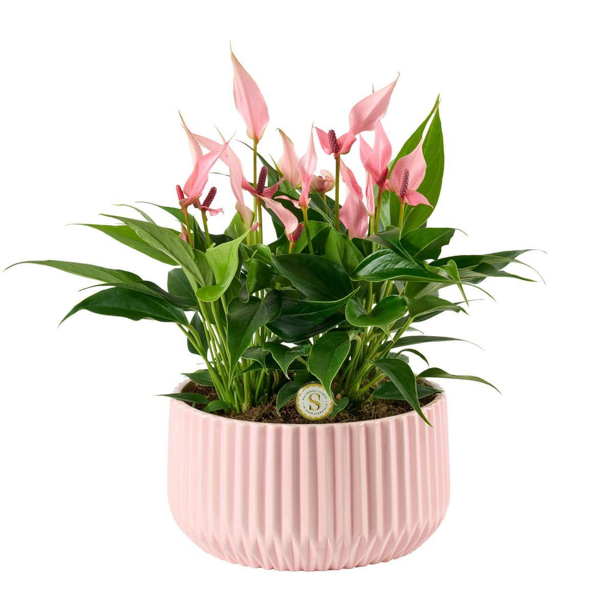 Pot Madeira combineert elegantie met een moderne uitstraling. Deze keramieken pot van 18 cm is speciaal ontworpen voor Table Anthuriums en vormt daarmee een perfect duo voor luxe tafeldecoratie of hoogwaardige cadeauconcepten. De fijne verticale ribbelstructuur geeft de pot een verfijnde look en zorgt voor een speels lijnenspel dat opvalt zonder te overheersen. Verkrijgbaar in drie eigentijdse kleuren rood, lichtgrijs en zachtroze past de Madeira naadloos in diverse interieurstijlen. Van feestelijk en opvallend tot rustig en minimalistisch. De pot is gemaakt van hoogwaardig keramiek en heeft een geglazuurde binnenkant, wat hem waterdicht en praktisch in gebruik maakt.