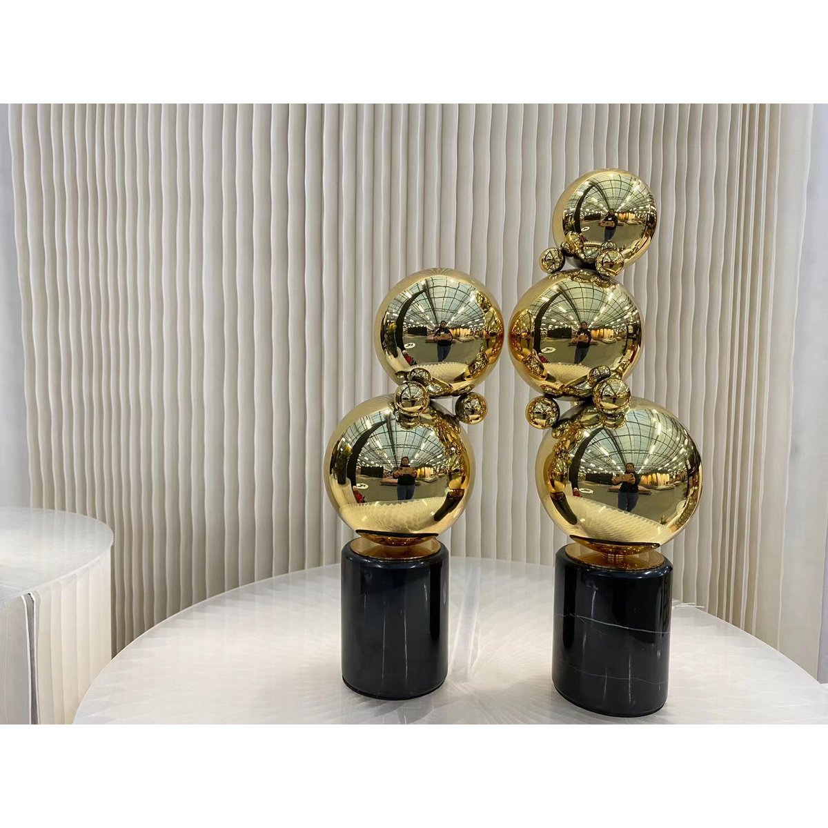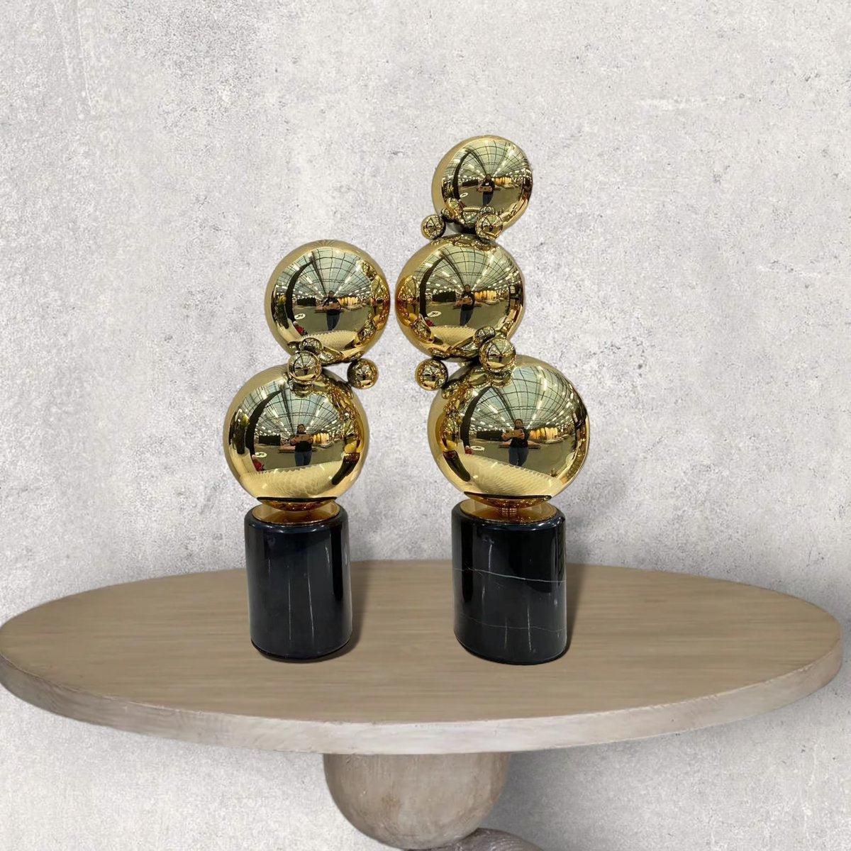 Set van twee zwart marmeren tafeldecoraties met messing bollenaccessoires. Onze producten zijn handgemaakt.