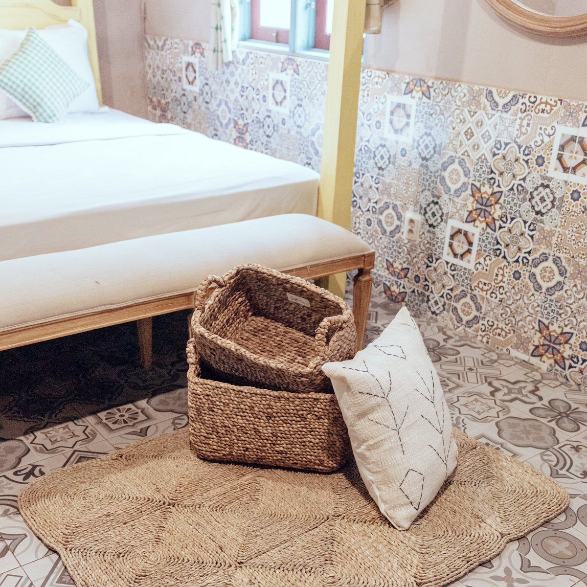 De waterhyacint is een tropische waterplant die op rivieren voorkomt en gezien wordt. Ze zijn eigenlijk afkomstig uit Zuid-Amerika, maar ook uit Zuidoost-Azië. Daar verguldt het als onkruid, omdat het zich ongelooflijk snel vermenigvuldigt en hele watermassa's met een tapijt kan bedekken. Het juiste gebrek aan licht en contact doodt al het onderwaterleven dat behoort tot de planten die nodig zijn. Om de planten vervolgens te kunnen verwerken voor verdere verwerking, gaan de bladeren verloren en worden de dikke stengels drie tot zeven dagen in de zon gezet. Het resultaat is een overvloed aan mogelijke, toonaangevende grondstoffen voor veel geweven goederen hier bij Soeji!